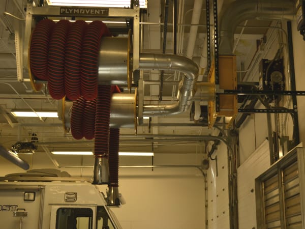 Vehicle exhaust hoses allow technicians to safetly work on vehicles inside the shop.