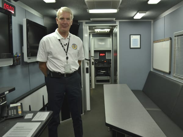 Vrtis has worked at the Sheriff's Office fleet for 16 years. He's pictured here inside the mobile command post.