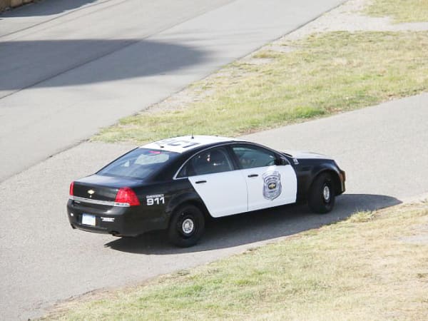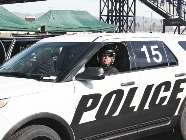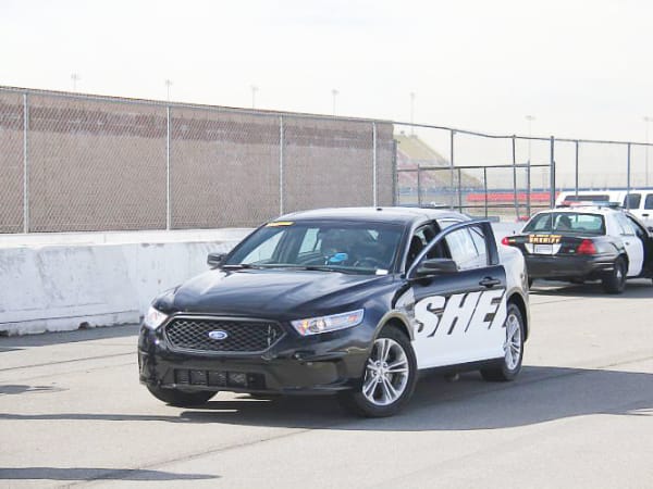 A LASD deputy rolls the Ford P.I. Utility EcoBoost toward the road course for testing.