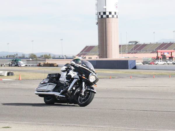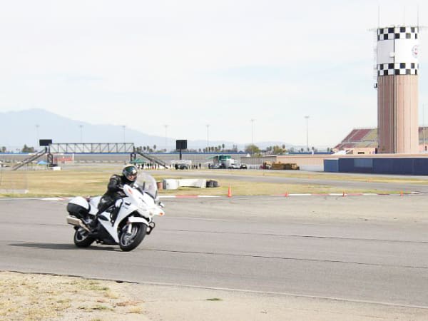 The Victory Commander 1 heads out of an S curve at the back of the road course.