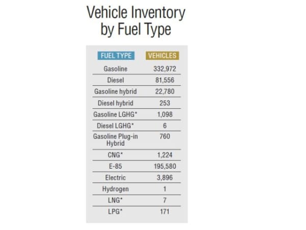 Gasoline vehicle totals have decreased by 2% from the previous year, while diesel vehicles have increased by almost 1%. The number of hybrids and flex-fuel vehicles has increased, while the number of CNG and electric vehicles has decreased. *Abbreviations: LGHG - low greenhouse gas; CNG - compressed natural gas; LNG - liquefied natural gas; LPG - Liquefied petroleum gas