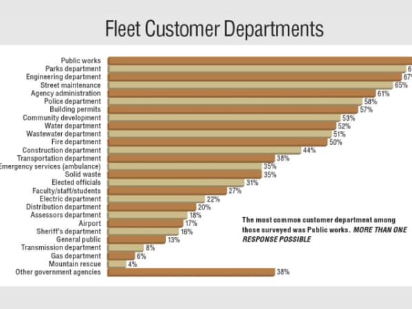 The most common customer department among those surveyed was Public Works. More than one response possible