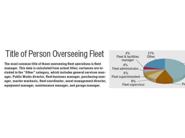 The most common title of those overseeing fleet operations is fleet manager. This data is calculated from actual titles; variances are included in the “Other” category, which includes general services manager, Public Works director, fleet business manager, purchasing manager, master mechanic, fleet coordinator, asset management director, equipment manager, maintenance manager, and garage manager.