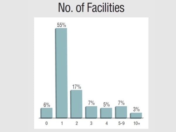 More than half of survey respondents reported having less than 10 technicians. Respondents with more than 100 technicians reported having at least 10 maintenance facilities. Those who had no technicians were not included in this chart.