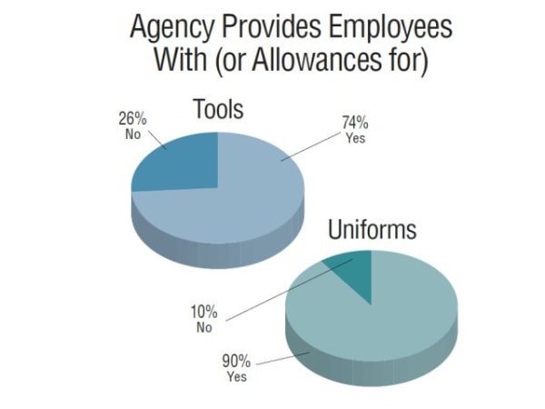 The majority of public fleets provide tools and/or uniforms for employees, or allowances for them.