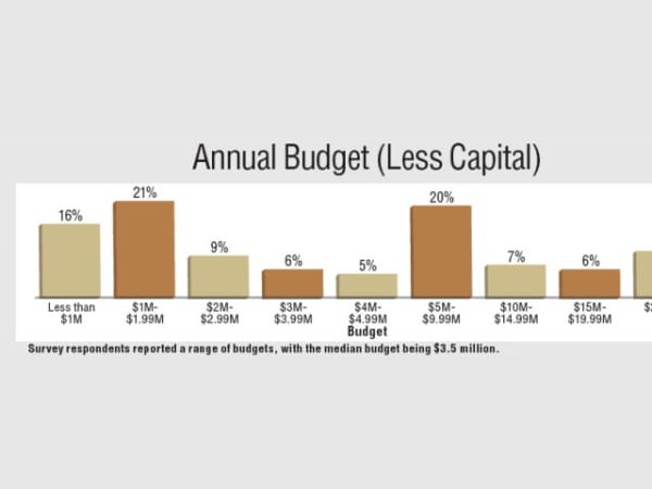 Survey respondents reported a range of budgets, with the median budget being $3.5 million.