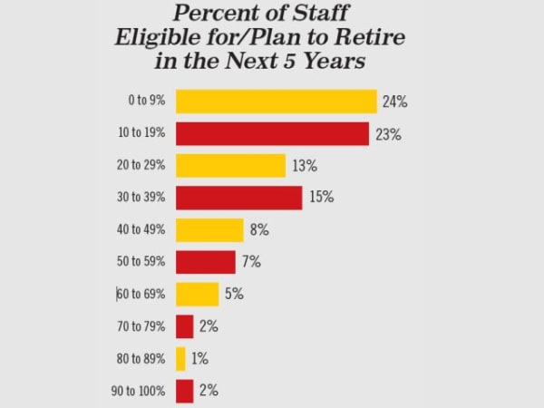 About 17% of respondents believe at least half their staff members are eligible for or plan to retire in the next five years.