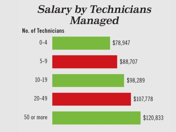Those managing more technical staff are paid more on average.