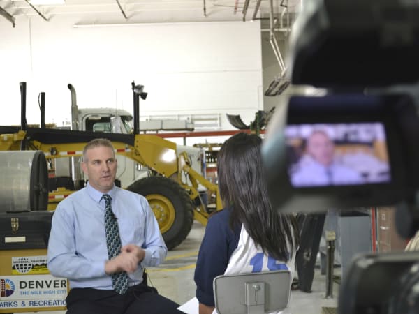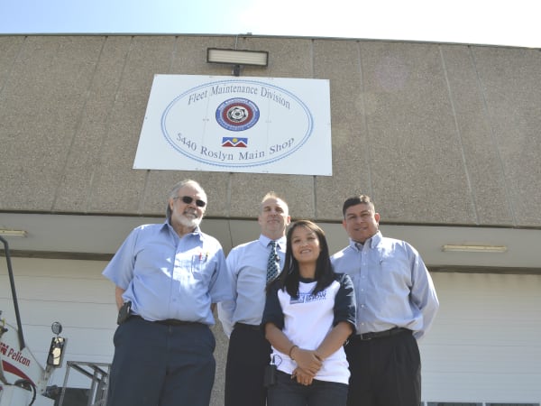 The City and County of Denver fleet is focusing on improving equipment availability this year. Fleet management staff pictured (l-r) are Duane Fields, Todd Richardson, and Robert Coronado with Government Fleet Executive Editor Thi Dao.