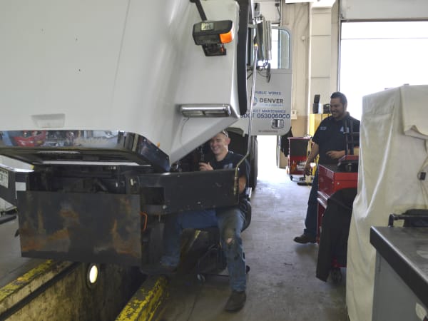 Employees of the Fleet Management Division of Denver include (l-r) Robert Coronado, Al Robinson, and Duane Fields.
