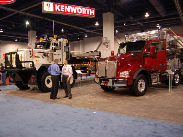 In the heavy-duty category, Kenworth displayed several trucks, including its new T880 dump truck rock slinger at right.