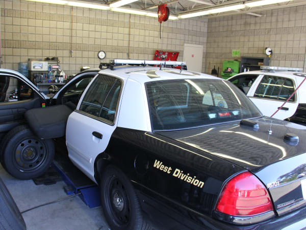 The city operates seven satelite garages like this one to handle routine maintenance of police vehicles.