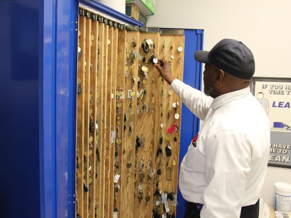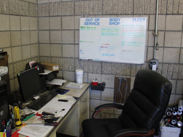 The keys to city motor pool vehicles are stored in cabinet in the maintenance garage's office.