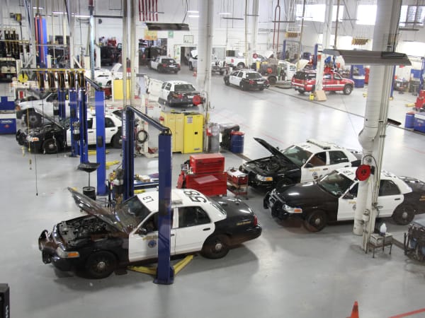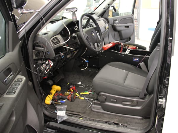 One section of the garage is dedicated to setting up pursuit vehicles with police equipment. A typical police upfit takes about 50 hours.