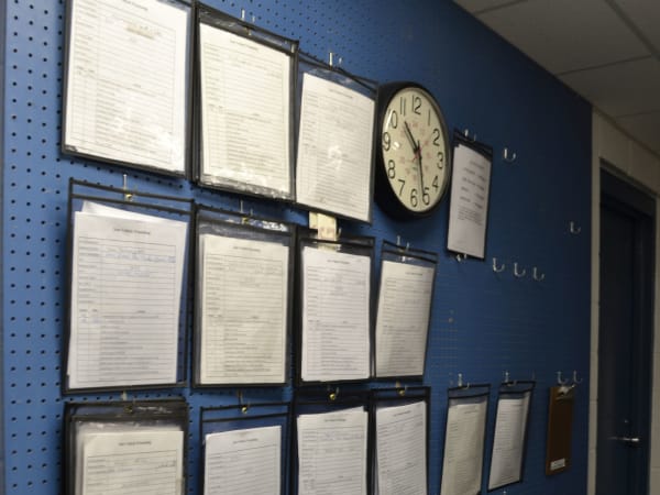 Staff keep all information about current vehicle purchases on a wall in the office.