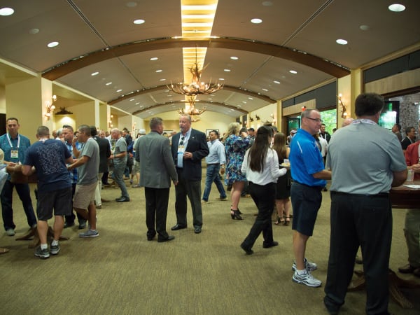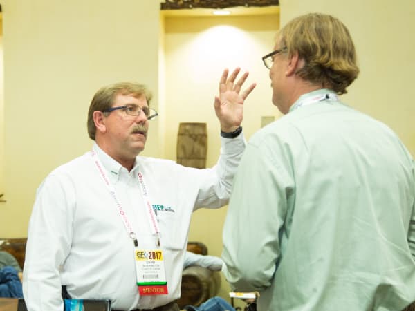 David Worthington from Sonoma County, Calif., (left) speaks to Richard Battersby from the City of Oakland at a networking event.