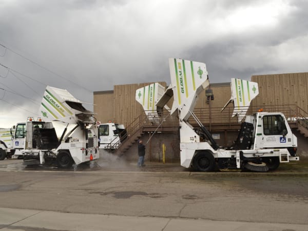 The city has eight street sweepers. They are washed at least once a day by the operators, who are pictured here while washing the trucks.