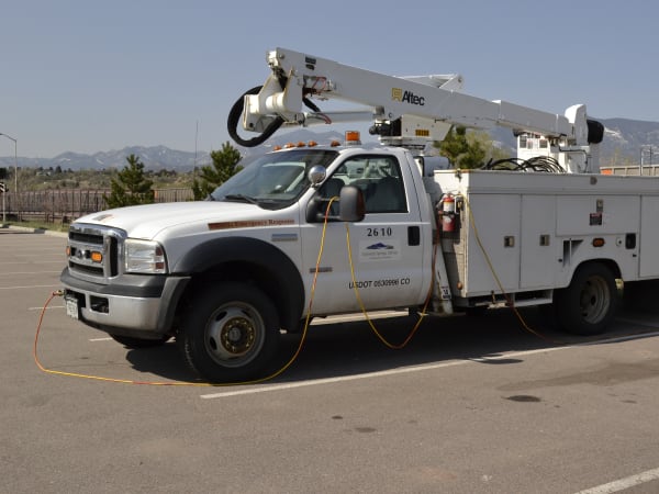 The utility fleet has a large aerial fleet of more than 80 vehicles, including this Altec AT- 37G insulated bucket truck that supports the electric troubleshooter group.