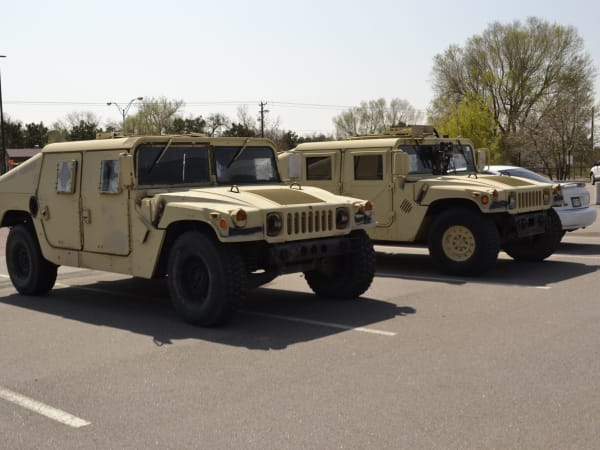 The municipal fleet has a small group of Humvees in its police department. These units pictured are used for spare parts.