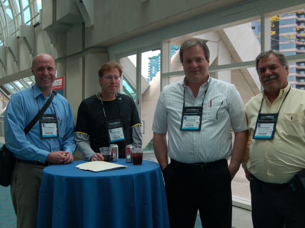 Tom Johnson, Mike Hajek, Doug Weichman, and Rick Teebay at GFX. (Photo courtesy Steve Riley.)