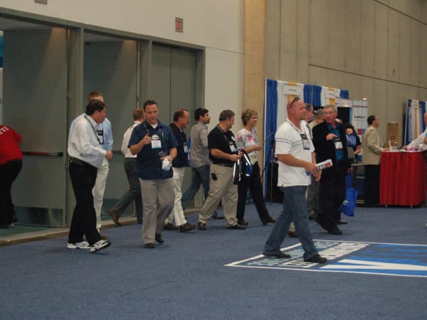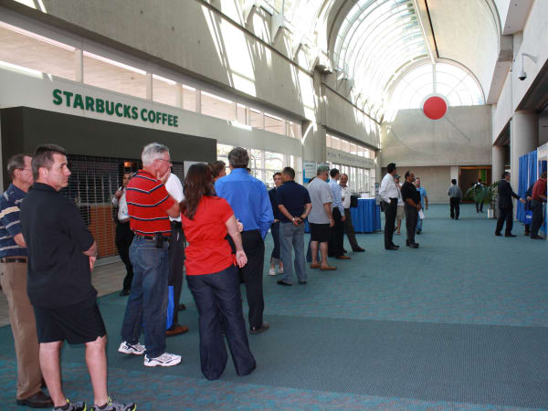 Attendees at GFX 2011 wait for the exhibition hall to open.