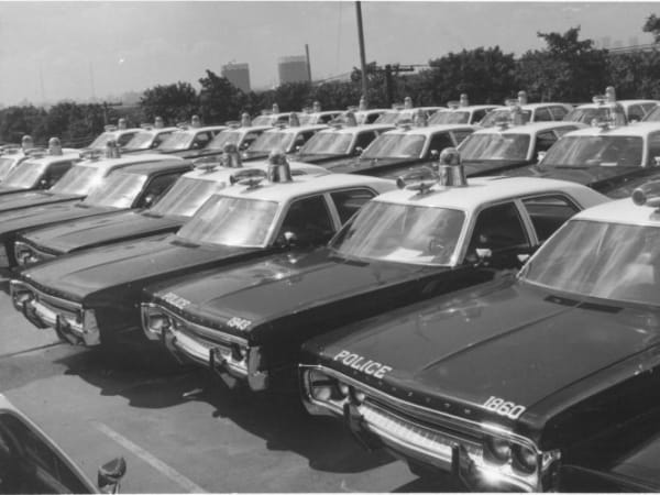 The NYPD adopted the Plymouth Fury as its 1970s patrol unit. This photo shows a fleet lot in 1971.