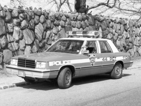The major squad cars of the 1980s were Chrysler's St. Regis/Gran Fury. This photo is from 1986.