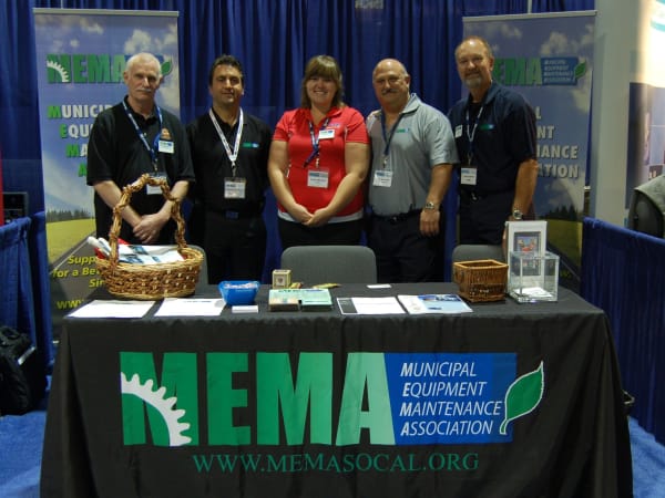 MEMA staff man a booth at the ACT Expo in May 2012. L-R are John Frala, chair, Educational Committee; Paul Condran of Culver City, vice president; Katie Mishler, administrator; Jay Nossett of the City of Whittier, treasurer; and Craig Crowder of the City of Beverly Hills, sergeant-at-arms.