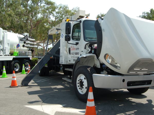 Culver City Public Works truck with Freighliner chassis, ISLG CNG engine, and 10-ton Terex crane.