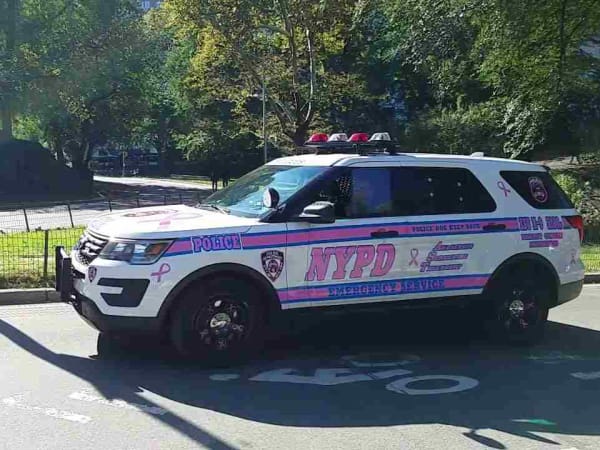 Breast Cancer Awareness month is celebrated every October. This police car is a wrapped K-9.