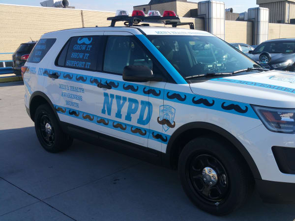 This police car celebrates Movember, which takes place in November and raises awareness for men's health issues.