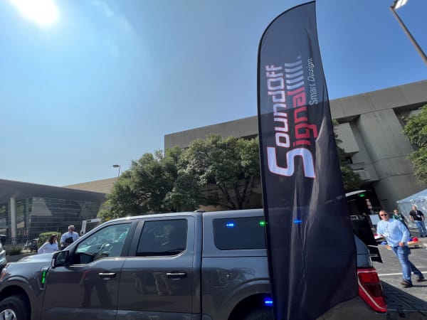 SoundOff Signal displayed its bluePRINT 500 Siren Series technology during the Block Party & Experience. The team had a pre-recorded message playing for attendees to hear.