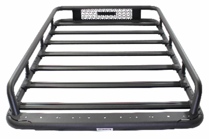 The Go Rhino SRM600 are universal basket-style roof racks with channeled aluminum crossbars to mount accessories like shovels, axes, Quick Fist clamps, ice chests, cargo carriers, and other gear. Front platform and rear crossbars are pre-drilled for lights to be mounted. These Quick Fist-compatible cross bars are pre-assembled for easy installation. Rhino Clamp cross bar clamps are included for mounting to vehicle OE factory-installed or aftermarket cross bars. They are black textured, powder coat finish with 5-year warranty.