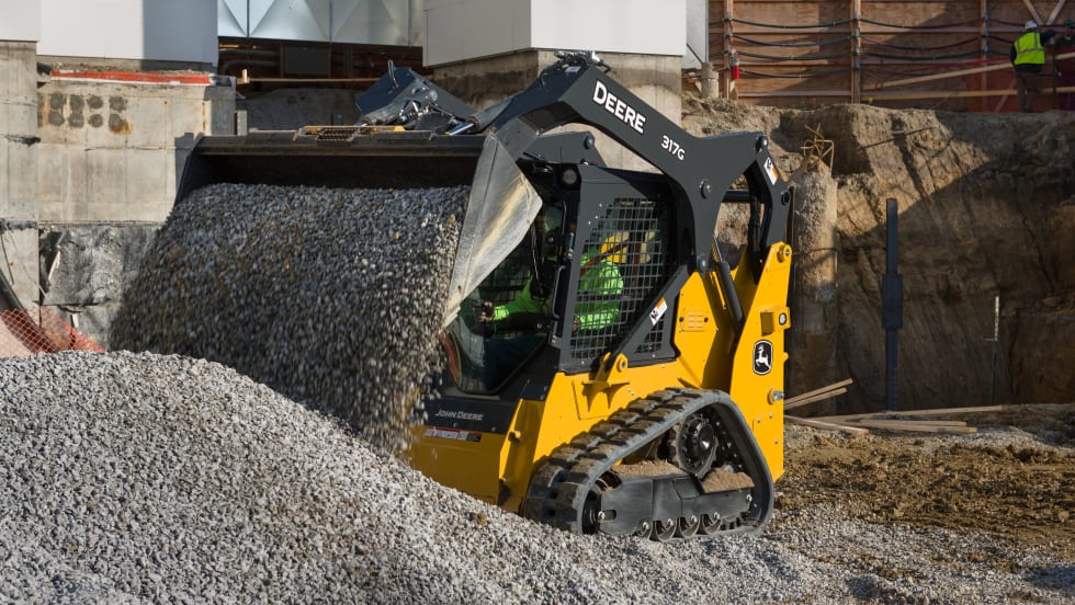 John Deere's new Tier 4 Final G-Series 317G compact track loader features an improved horsepower-to-weight ratio and an optimized boom design.