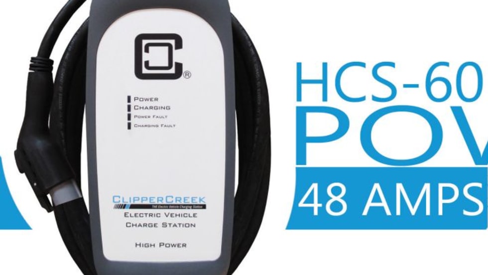 Clipper Creek pairs its rugged HCS-60 48-amp power station with a durable rubber-molded vehicle cable and connector. This 240-volt, Level 2 electric vehicle charging station is rated for both indoor and outdoor use.