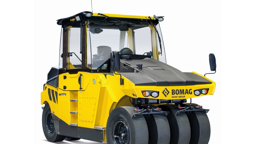 The BOMAG BW 28 RH pneumatic tire roller features a 106-cubic-foot ballast compartment and efficient weight ballast changing system to boost wheel loads and improve compaction performance.