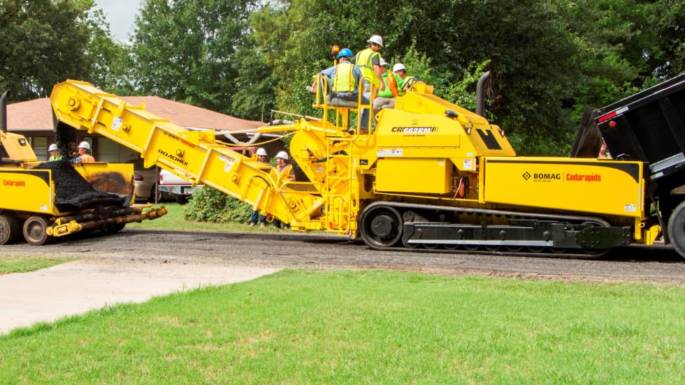 The rubber track Cedarapids CR662RM RoadMix from BOMAG is designed as both a material transfer vehicle (MTV) and paver to increase utilization rates.