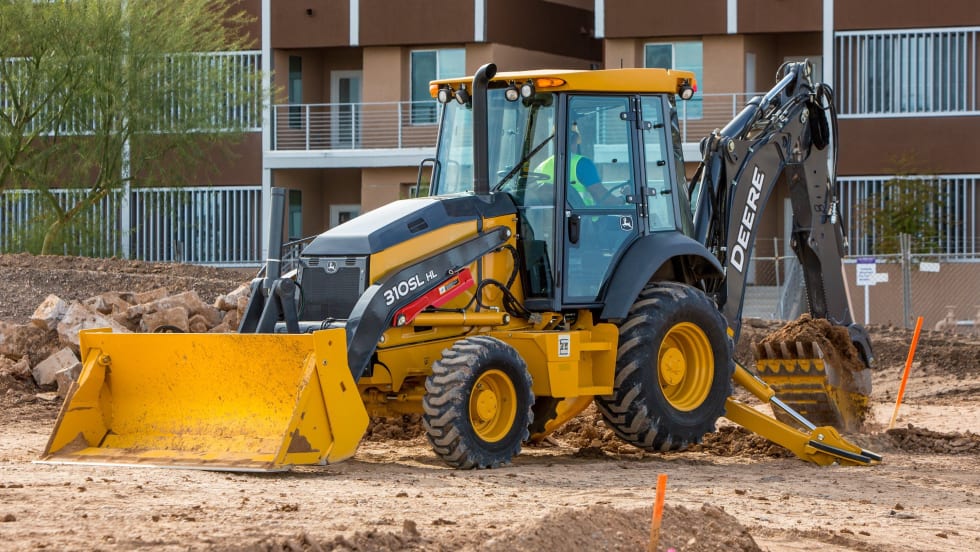 The John Deere 310SL HL backhoe loader is designed to help manage an expanding workload with multiple tasks, without moving up to a larger backhoe.