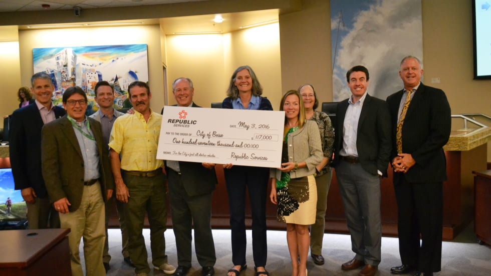 Republic Services of Idaho presented the City of Boise, Idaho, with a check for $117,000 to launch the city’s first electric-vehicle fleet.