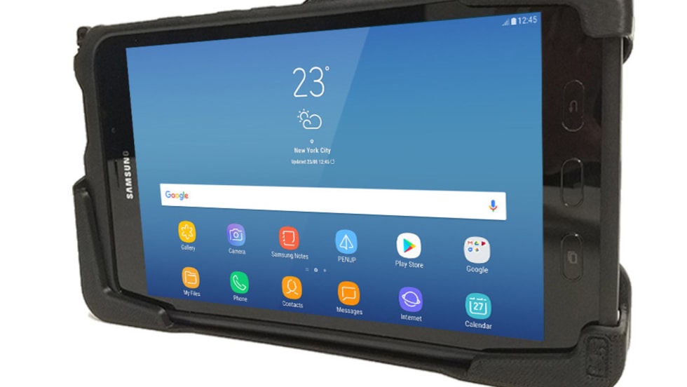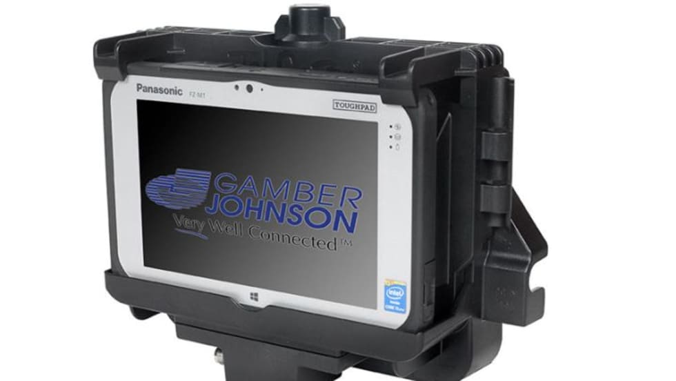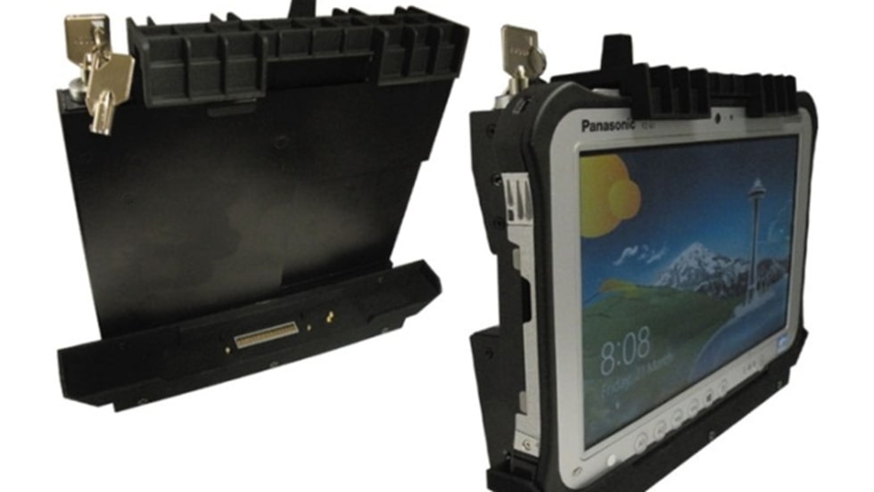 Gamber-Johnson's TabCruzer vehicle docking station for the Panasonic Toughpad FZ-M1 (Windows) or FZ-B2 (Android) tablet is designed to minimize the overall footprint of the FZ-M1/FZ-B2 mobile computer.