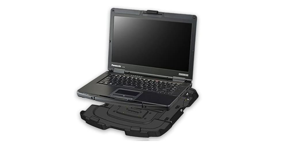 Havis' Panasonic Toughbook 54 docking station (Model DS-PAN-420) accommodates all Toughbook 54 models. It provides access to a bottom SmartCard reader while the computer is secured in the dock.