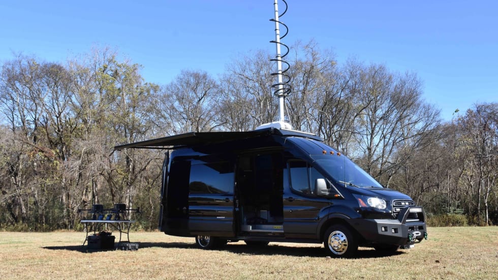 The vehicle is designed to provide internet capabilities necessary to operate all UAS equipment and software and is powered by an onboard inverter system that provides the vehicle with self-sustaining power.