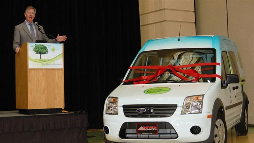 SAINT PAUL, MN - Mayor Christopher Coleman unveiled the newest addition to Saint Paul's vehicle fleet, the all-electric Ford Transit Connect, on Jan 18. The vehicle will be used in the Parks and Recreation department.
