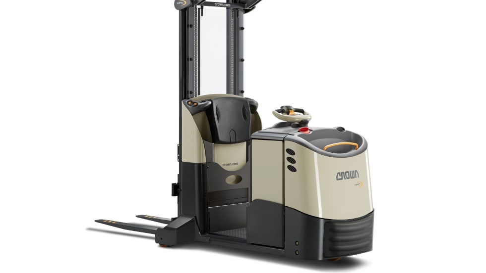 Crown Equipment Corporation’s MPC 3000 Series order picker combines the versatility of a counterbalance forklift and a pallet truck.