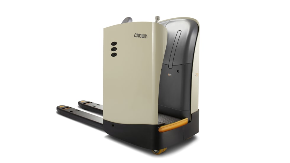 Crown Equipment Corporation’s RT 4000 Series pallet truck features a highly maneuverable, compact design ideal for confined applications.