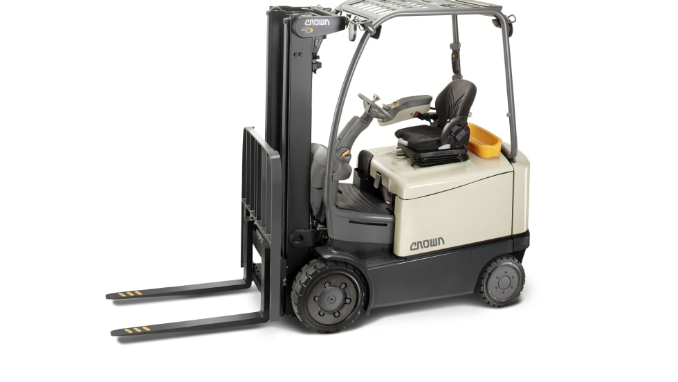 Crown Equipment Corporation’s FC 5200 Series counterbalanced forklift is designed for lifting heavy loads in tight aisles. It can support load capacities ranging from 4,000 to 6,500 lbs.