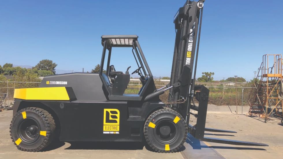 The Wiggins' Yard eBull is a large-capacity, zero-emission forklift with capacity of 30,000 to 70,000 lbs.