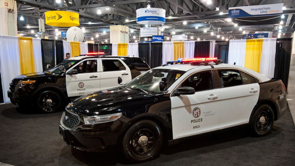 The Los Angeles Police Department showed off versions of Ford's Police Interceptor sedan and P.I. Utility at a police chiefs' conference in Philadelphia this week with an in-dash display that would de-clutter a patrol car's cockpit.