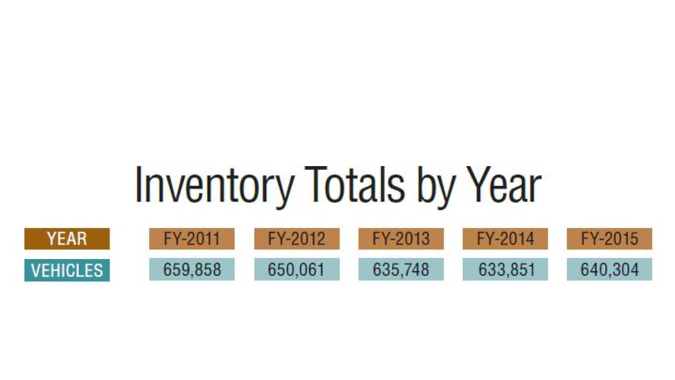 Data is derived the U.S. General Services Administration's FY-2015 Federal Fleet Report. The GSA gathers this information from federal agencies reporting motor vehicle fleet data.