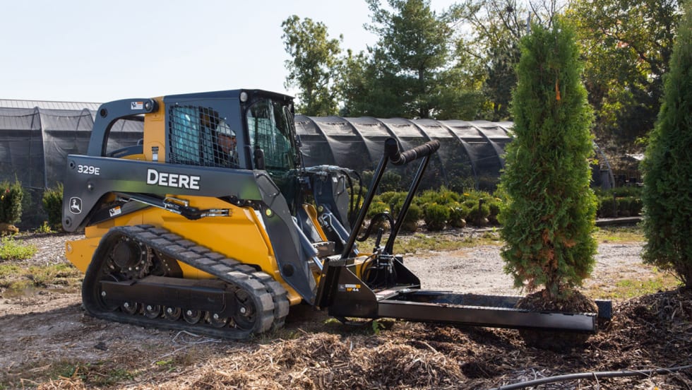 The John Deere Nursery Fork (NF44) is the latest addition to the lineup of Worksite Pro attachments and is optimized to work with select John Deere E- and D-Series skid steers and compact track loaders (CTLs).